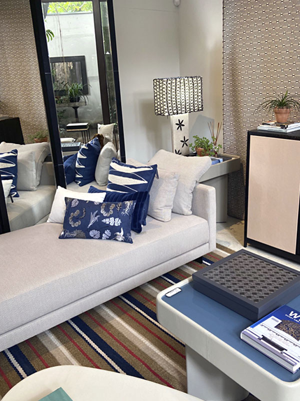 Tanto o tecido como a almofada resultam em produtos que promovem e valorizam a riqueza cultural brasileira.