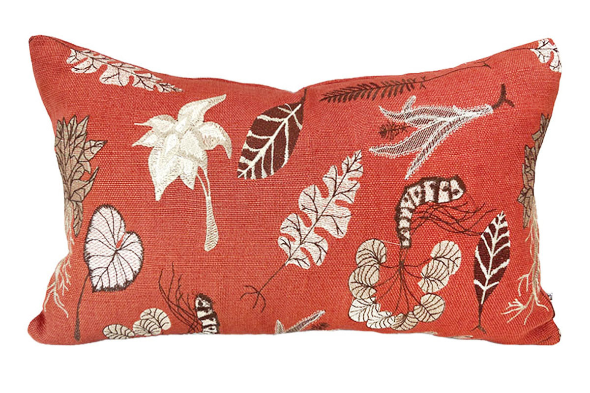 Dando continuidade ao nosso tecido em linho bordado Botânico com desenhos do estilista Ronaldo Fraga, apresentamos as almofadas 100% linho, com enchimento em pluma e bordadas com a mesma folhagem, dessa vez ampliada.