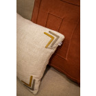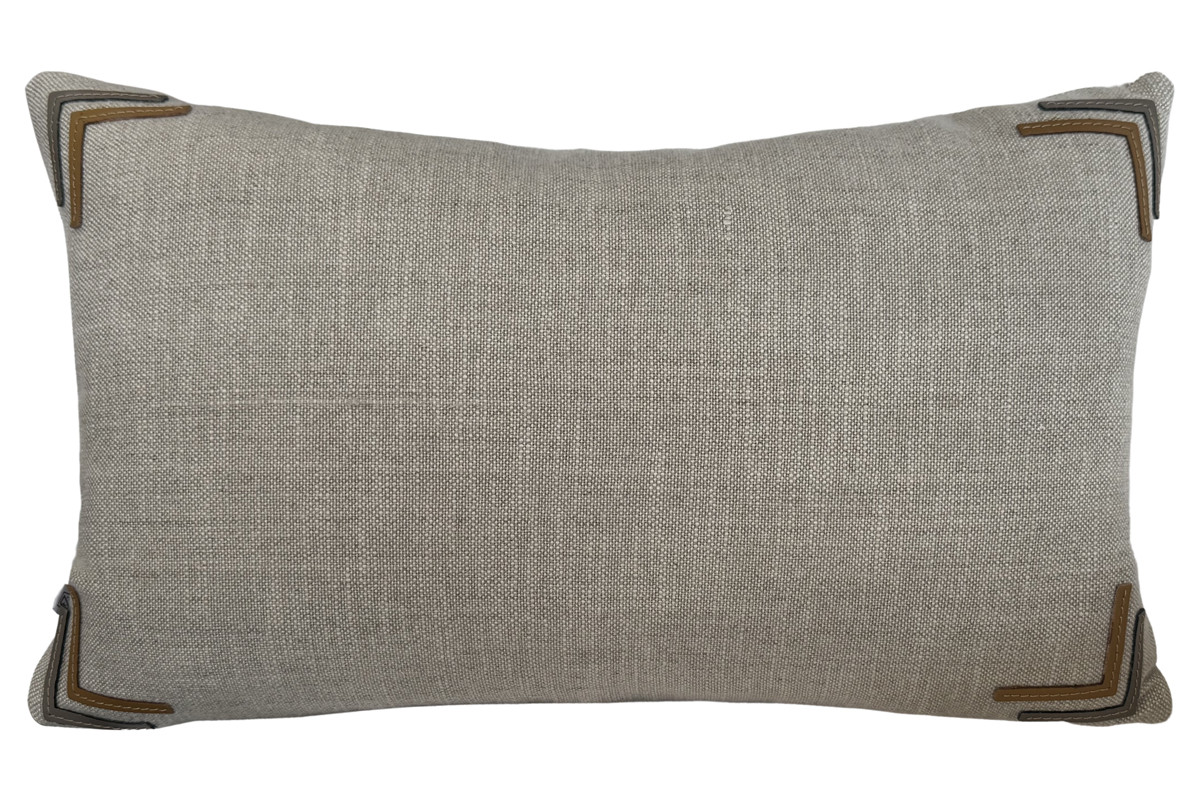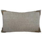 CAPA: 100% linho / APLICAÇÕES: 100% couro natural / RECHEIO - Capa: Percal de algodão 100% e Enchimento: 70% pluma natural, 30% plumante de silicone