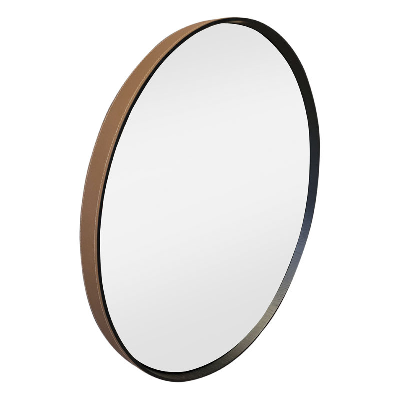 Estrutura em lâmina de madeira natural (Nogueira, Freijó, Carvalho ebanizado). Parte externa da moldura revestida em couro natural bovino.