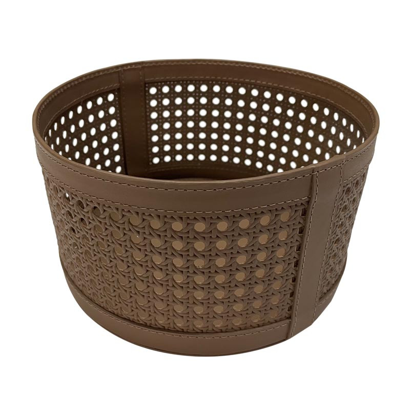 Cesto em couro trançado com pesponto.