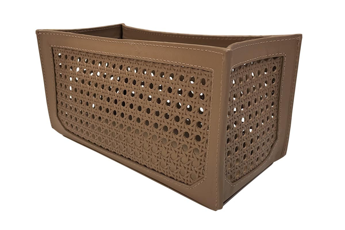 Cesto em couro trançado com pesponto.