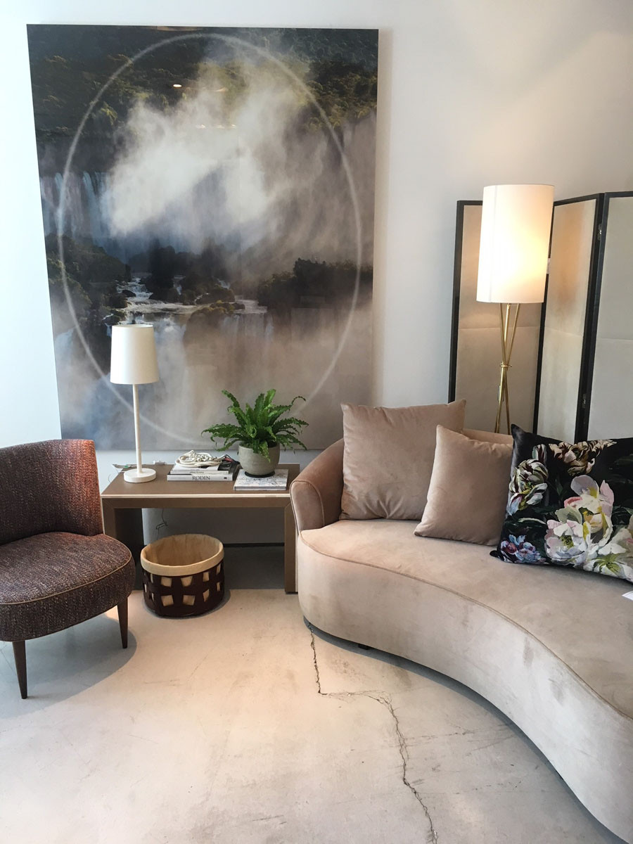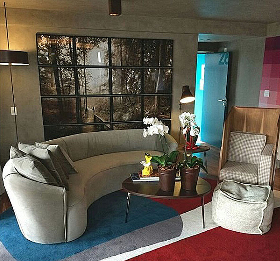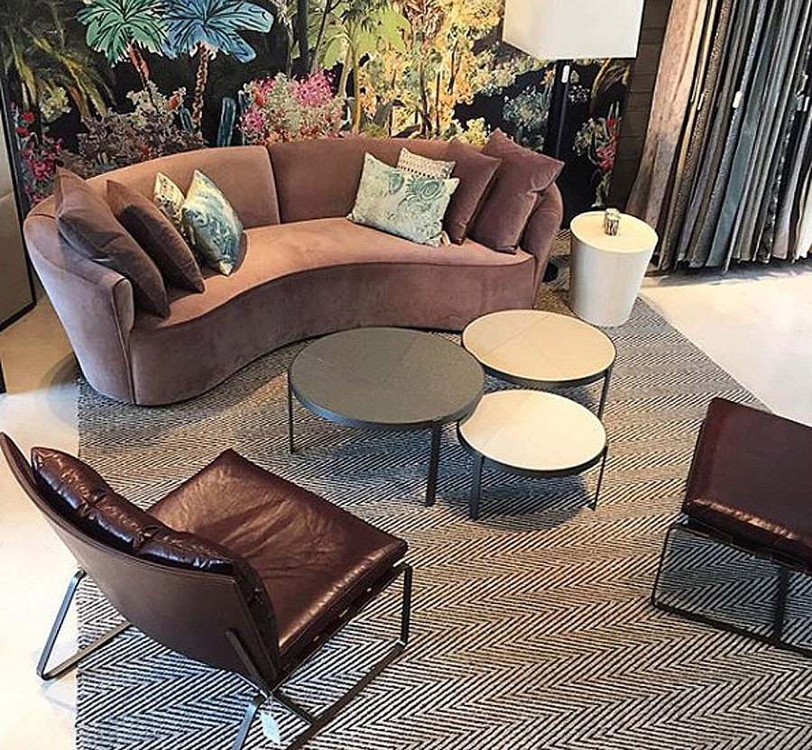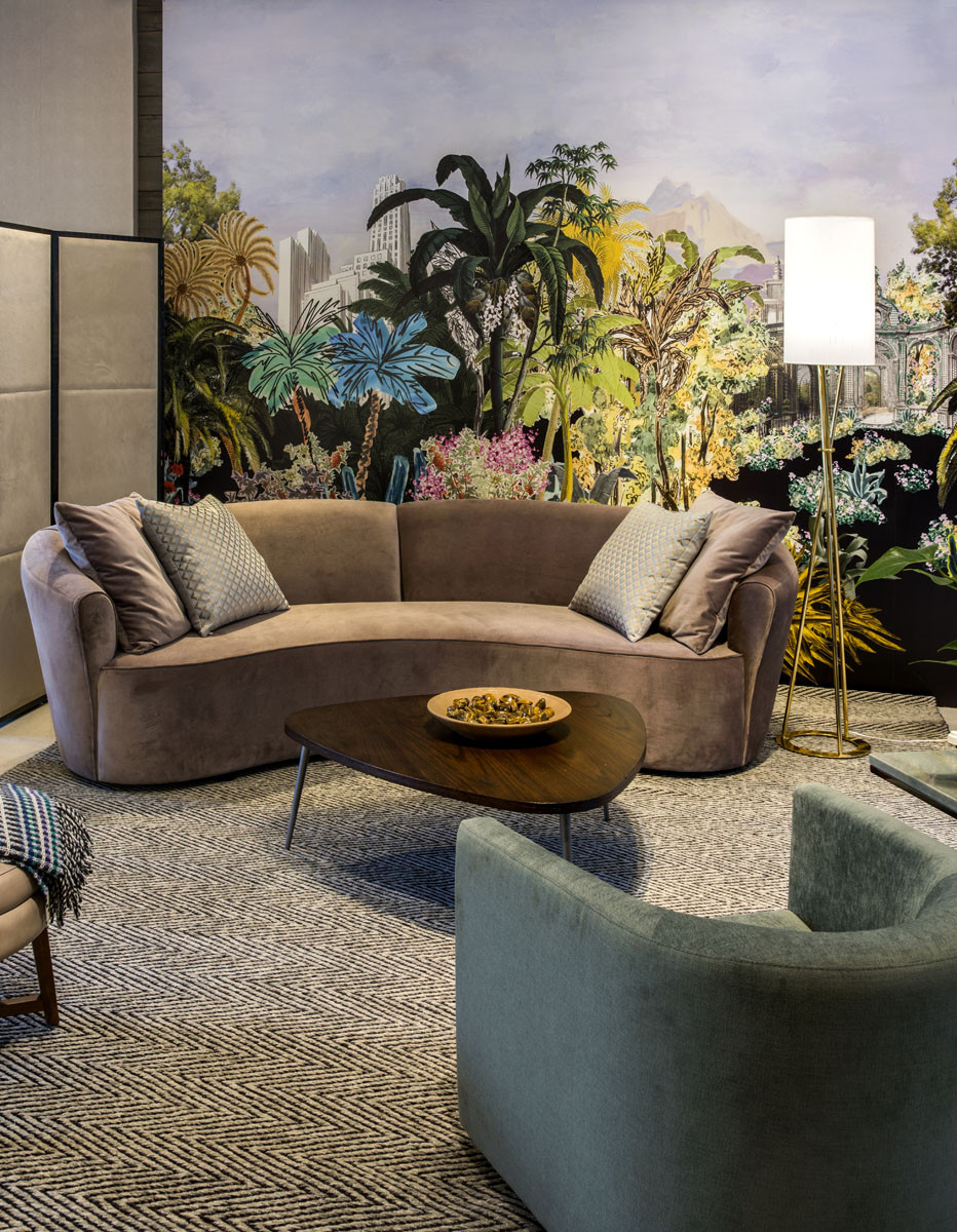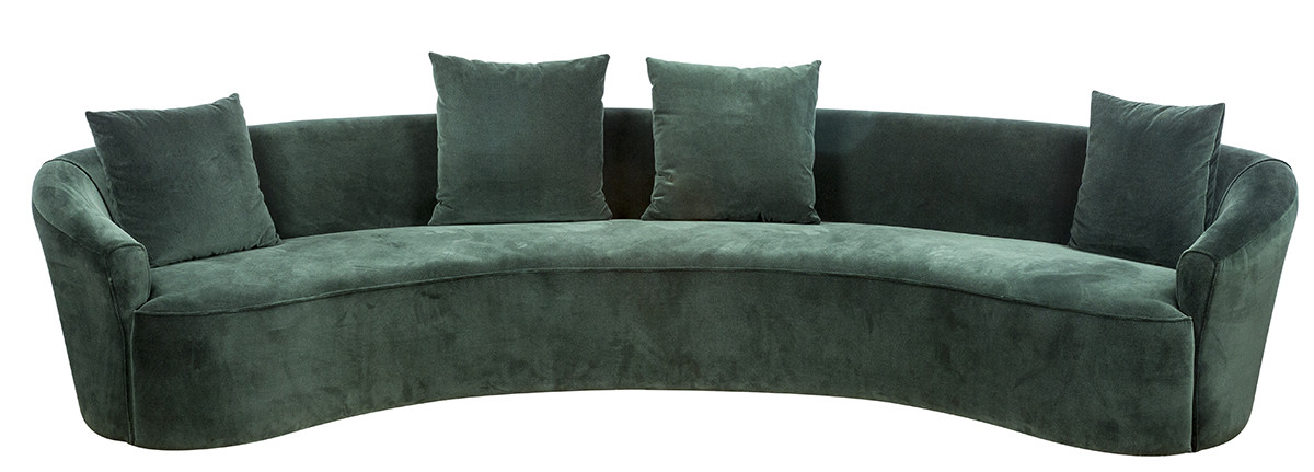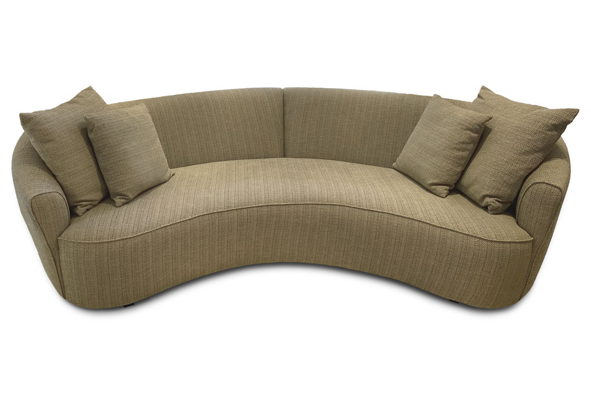 Sua forma orgânica propicia a interação com os moradores e com as outras peças que compõem a decoração, além de tornar o ambiente mais acolhedor e intimista. As formas foram construídas em torno da geometria do arco. Bipartido com 2 braços. Com 4 almofadas decorativas.