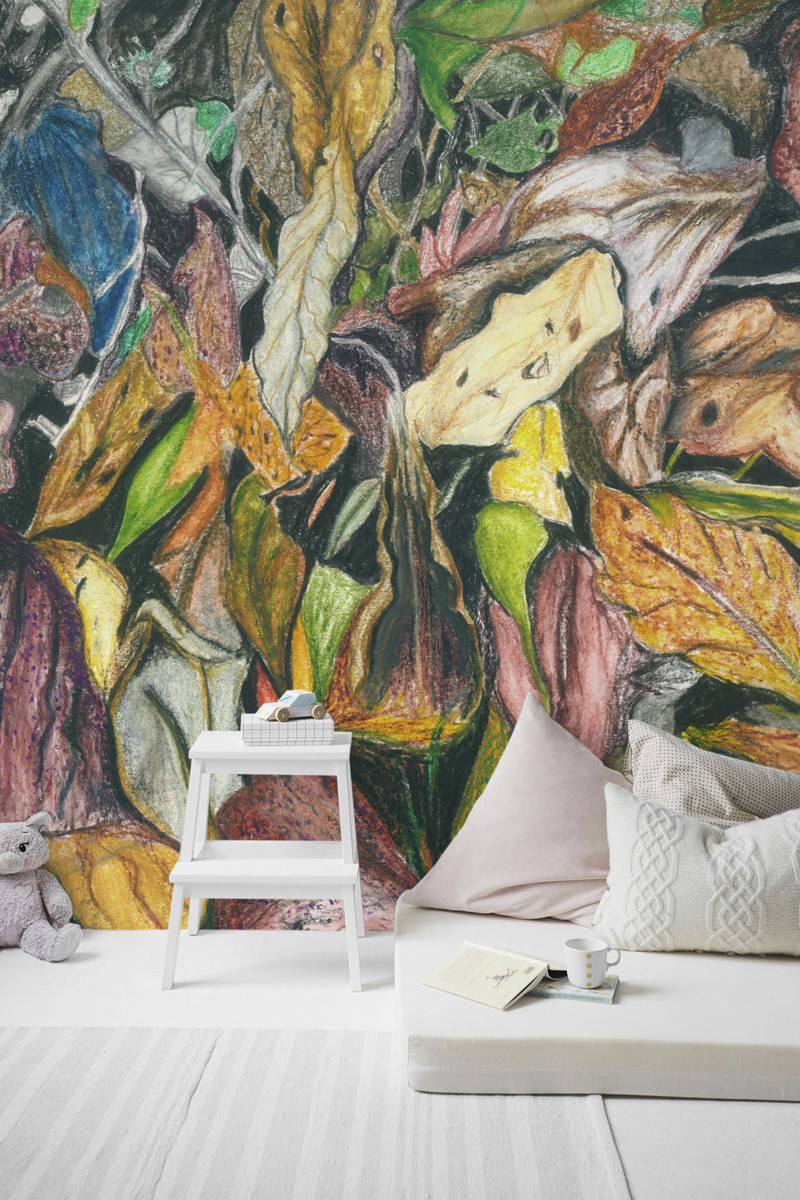 Na coleção Fractais, a artista Márcia Dias assina estampas exclusivas com seu traço delicado e cheio de personalidade. Desenha folhas e hortênsias em escala aumentada, onde cada nervura revela a lógica invisível que rege o crescimento vegetal — beleza matemática que se desdobra em papéis de parede poéticos.