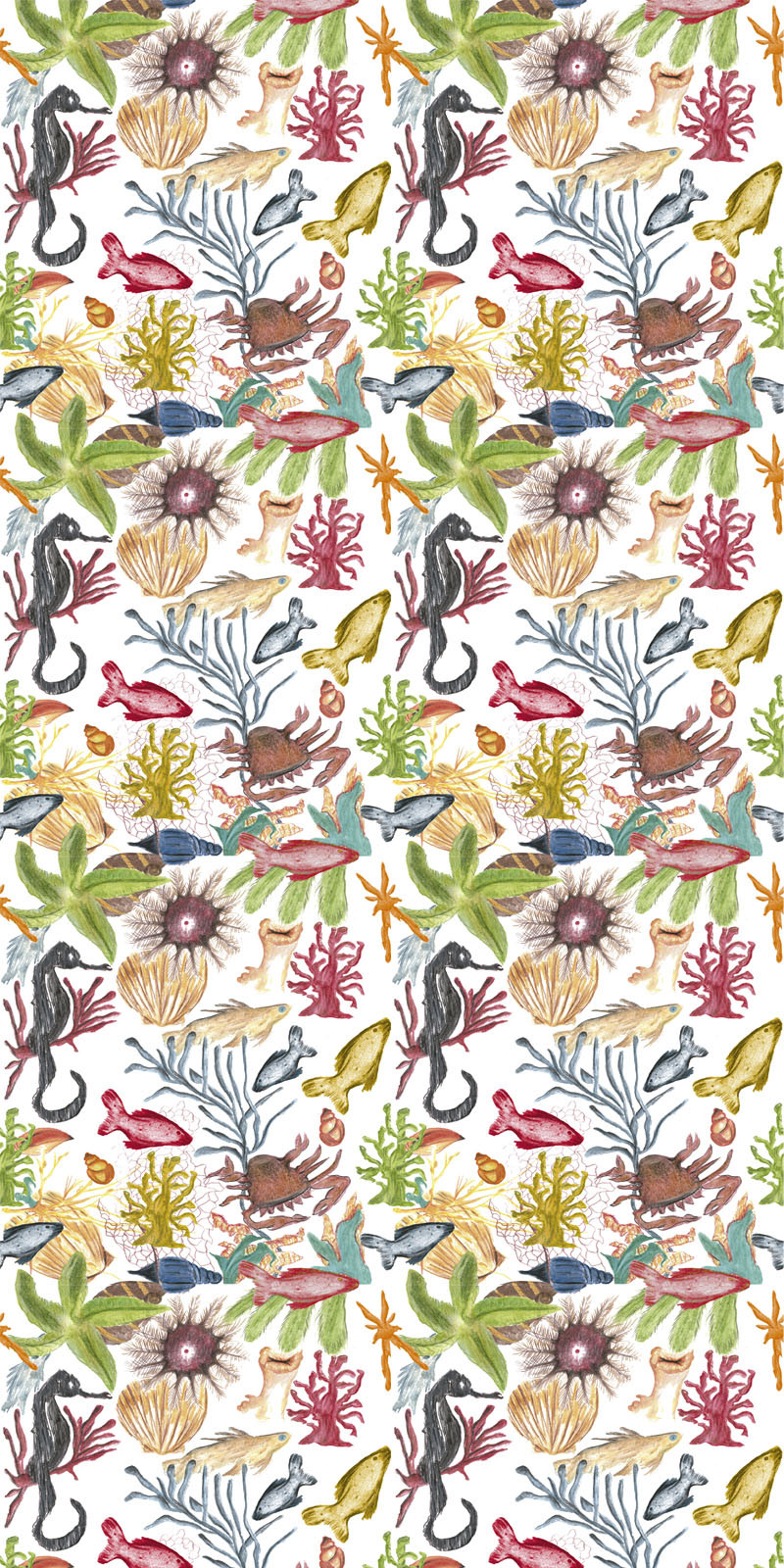 Na coleção Fractais, a artista Márcia Dias assina estampas exclusivas com seu traço delicado e cheio de personalidade. Desenha folhas e hortênsias em escala aumentada, onde cada nervura revela a lógica invisível que rege o crescimento vegetal — beleza matemática que se desdobra em papéis de parede poéticos.