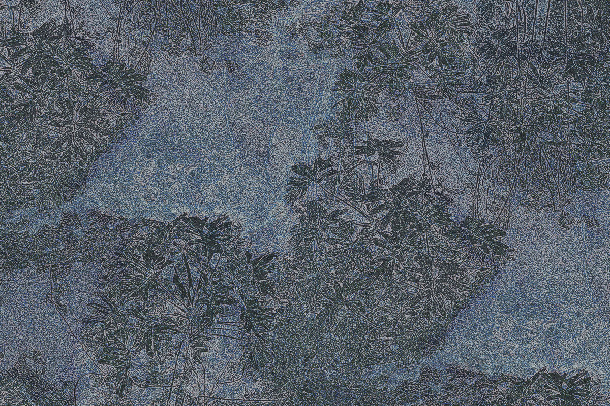 Inspirado por nomes como Athos Bulcão, Hércules Barsotti, Willys de Castro e Burle Marx, Ricardo traduz estruturas modernistas em repetições gráficas que ganham novas camadas, texturas e suportes. A natureza brasileira também entra em cena: cipós viram tramas, folhagens se tornam listras, e paisagens ganham escala de gravura, como no painel Brasilianas - uma peça que sintetiza arte moderna, gravura antiga, manipulação digital e inteligência artificial. Ricardo imaginou um padrão de escala ampliada e ao conversar com o fotógrafo e paisagista André Paoliello, teve acesso a imagens de paredões de mata, que tratou digitalmente até alcançar uma textura que remetesse à gravura.
