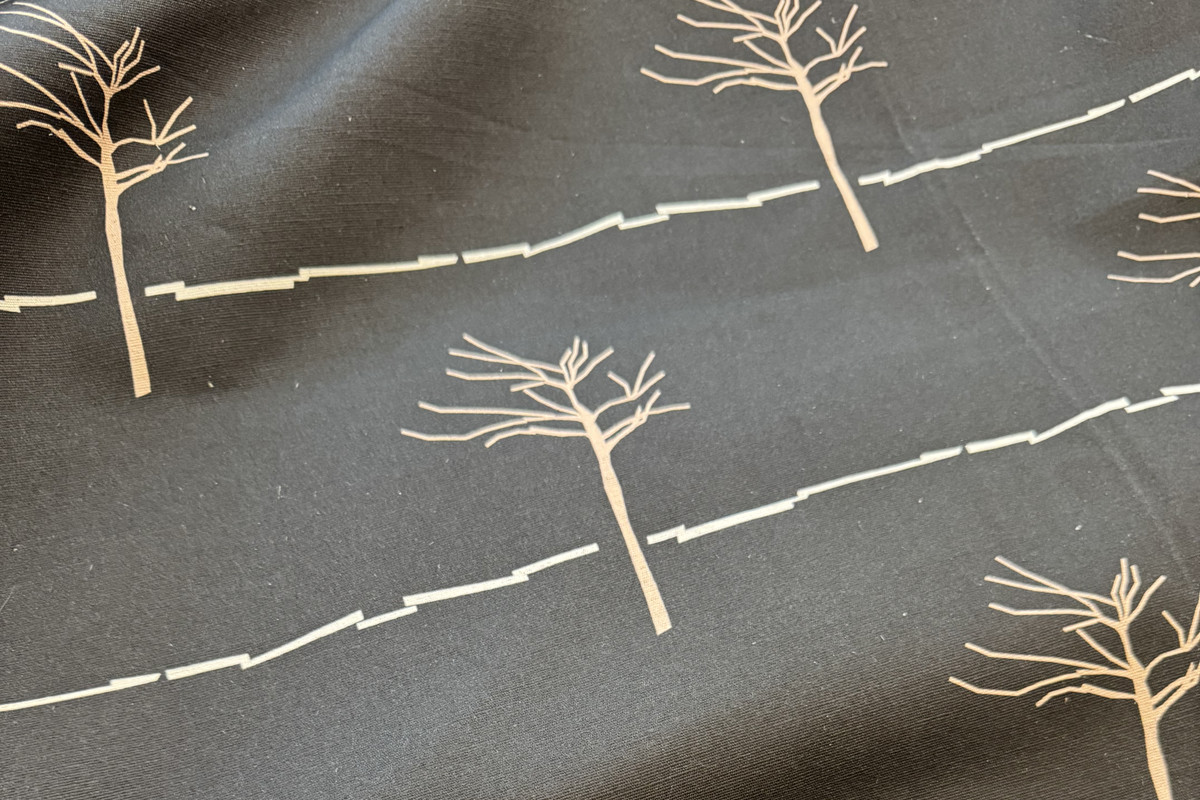 Como autodidata no design, o Art Déco foi sua primeira escola teórica – a geometria lírica em sintonia com o processo industrial a marcaram. Por conta dessa influência, a designer criou uma coleção têxtil que celebra as platibandas (faixas verticais que emolduram a parte superior de um edifício e escondem os telhados) como formas e estudos de repetição.