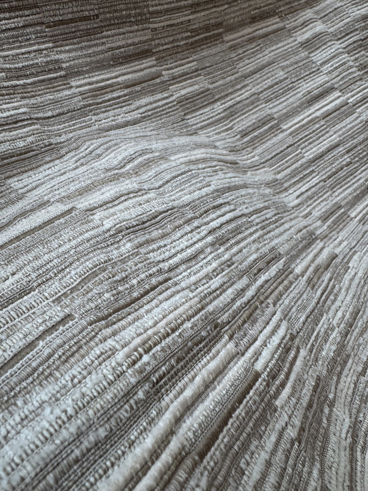 Celebrando as formas repetitivas e orgânicas da paisagem brasileira, o algodão BURITI teve inspiração em um dos ícones do cerrado, a palmeira Buriti com suas formas marcantes e escamas que lembram o grafismo do tecido.