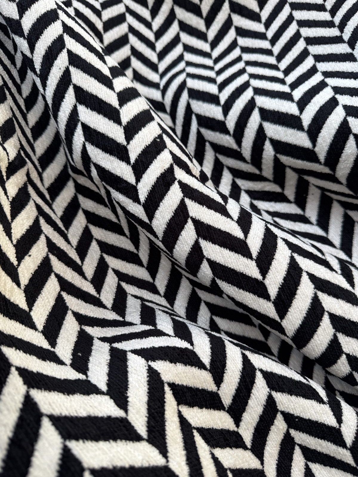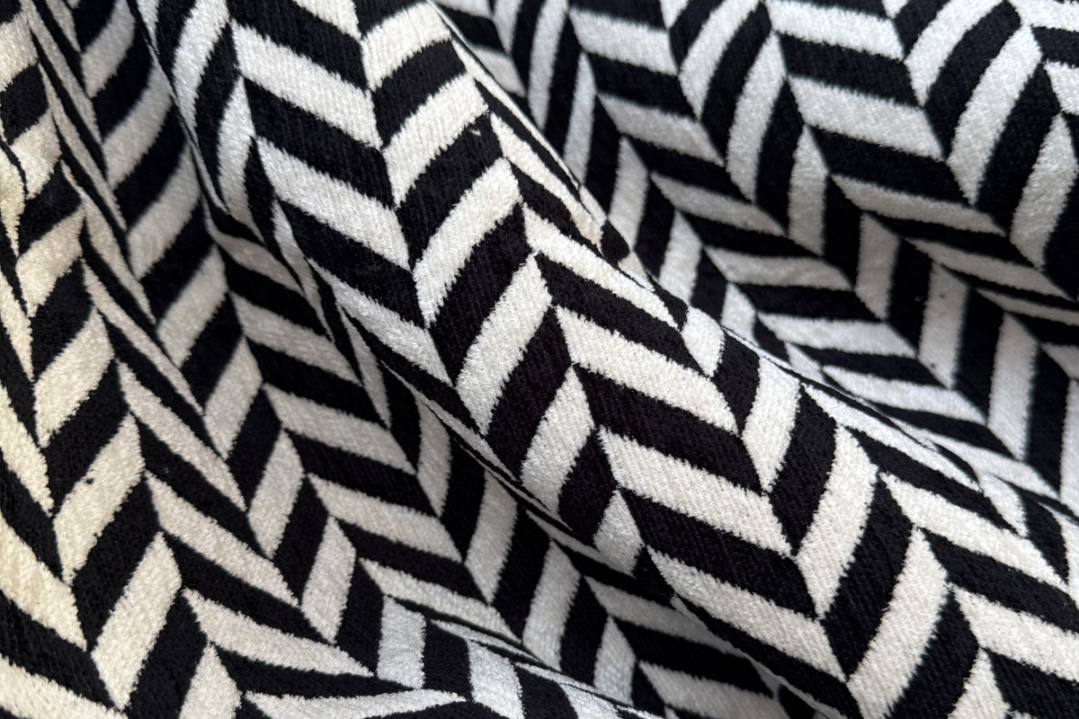 Com padrão rítmico e geométrico, o algodão CAULE, da coleção Fractais, evoca uma forma repetitiva e estruturada como um caule segmentadp ou ramificado.