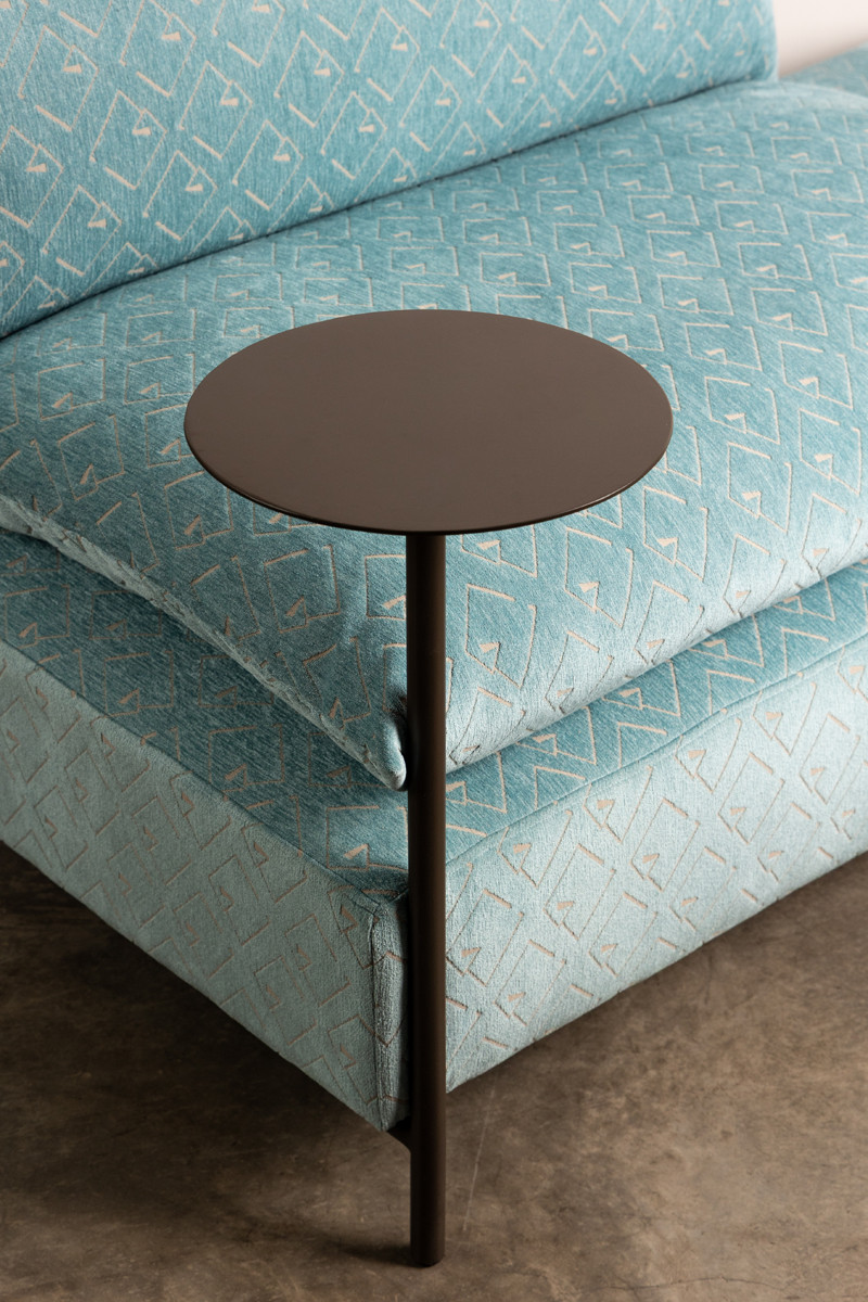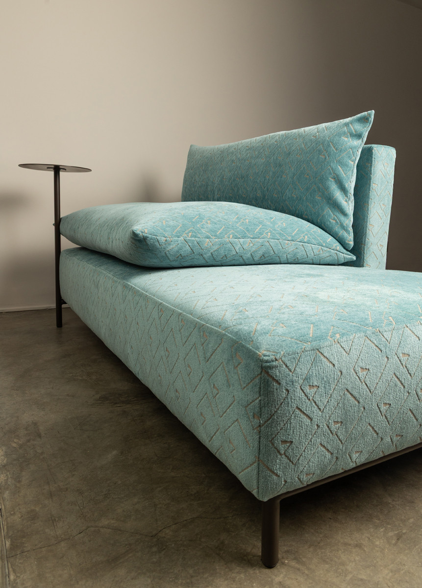 Como autodidata no design, o Art Déco foi sua primeira escola teórica – a geometria lírica em sintonia com o processo industrial a marcaram. Por conta dessa influência, a designer criou uma coleção têxtil que celebra as platibandas (faixas verticais que emolduram a parte superior de um edifício e escondem os telhados) como formas e estudos de repetição.