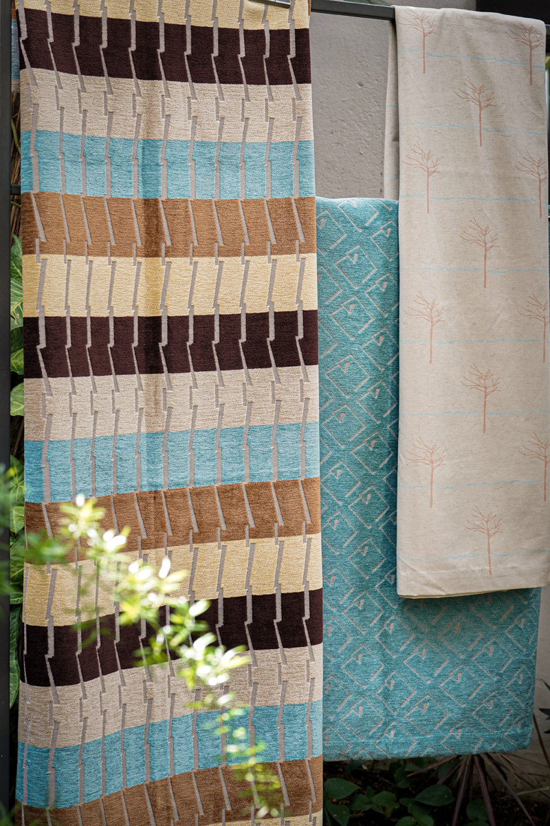 Esta coleção têxtil surgiu no encontro com “Pinturas e Platibandas” livro de Anna Mariani, num passeio ao IMS em São Paulo. E, ao mergulhar pelas “lentes” de Anna, Sandra investiga nas cores e texturas as sensações do sertão para exprimir nos tecidos a arquitetura no estilo Art Déco, presente na região.