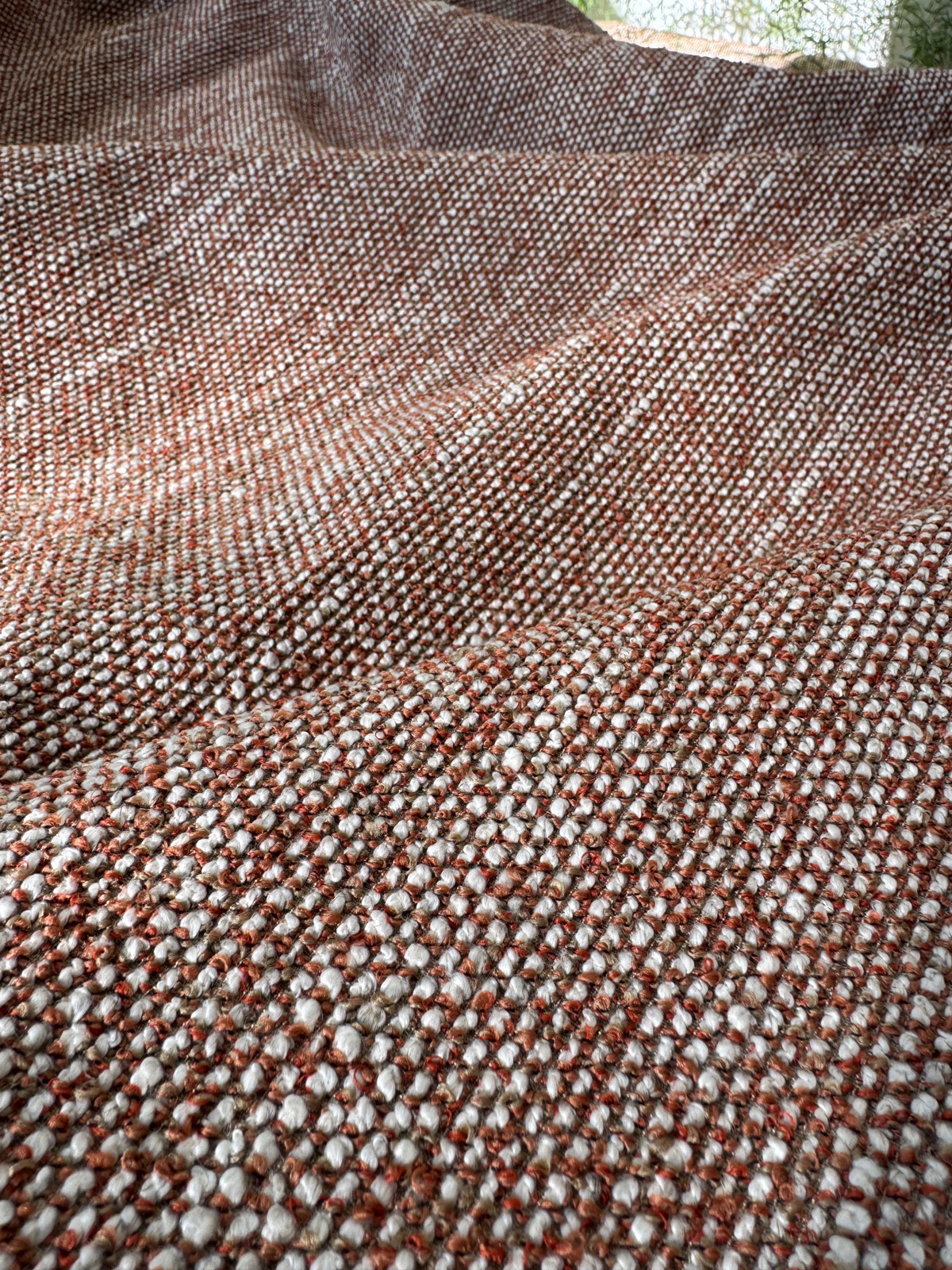 Com trama rústica e sofisticada, com tons terrosos e toque artesanal, o jacquard TERRACOTA remete à argila e à tonalidade presente no tecido.