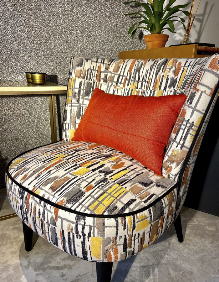 Além do tecido, a coleção Mosaicos conta com luminária em base e cúpula elíptica, caixa decorativa quadrada, cachepot redondo e uma bandeja retangular – já apresentados em nossa coleção de 2020. O colorido neutro é ancorado no preto e recebe detalhes em amarelo e canela que remetem a cores de metais conferindo um destaque de luxo às peças.